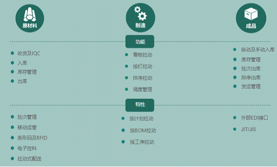 靈活多樣的物料拉動管理,支持排序、備料、手工拉動、Andon等多種配送方式 ;